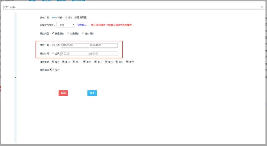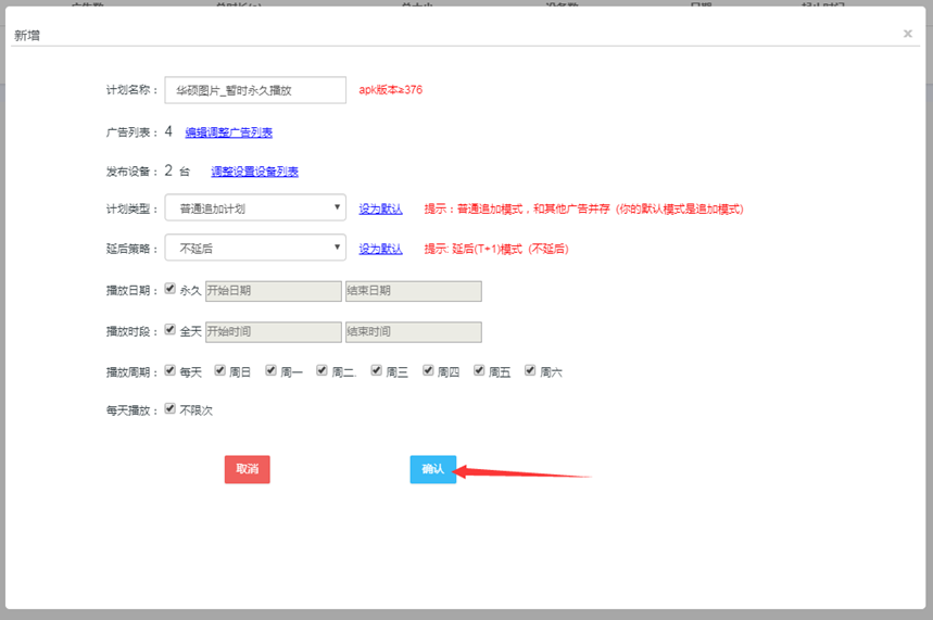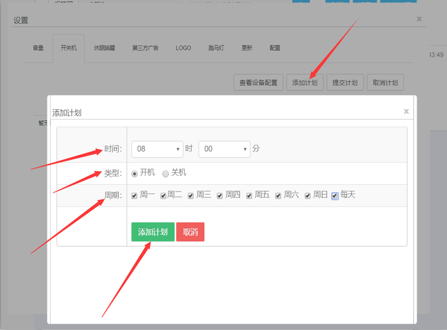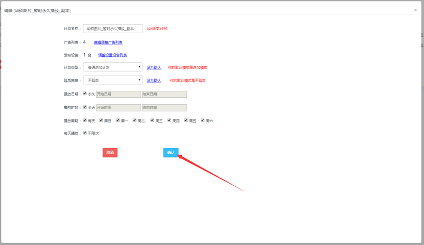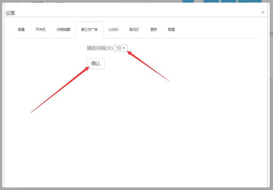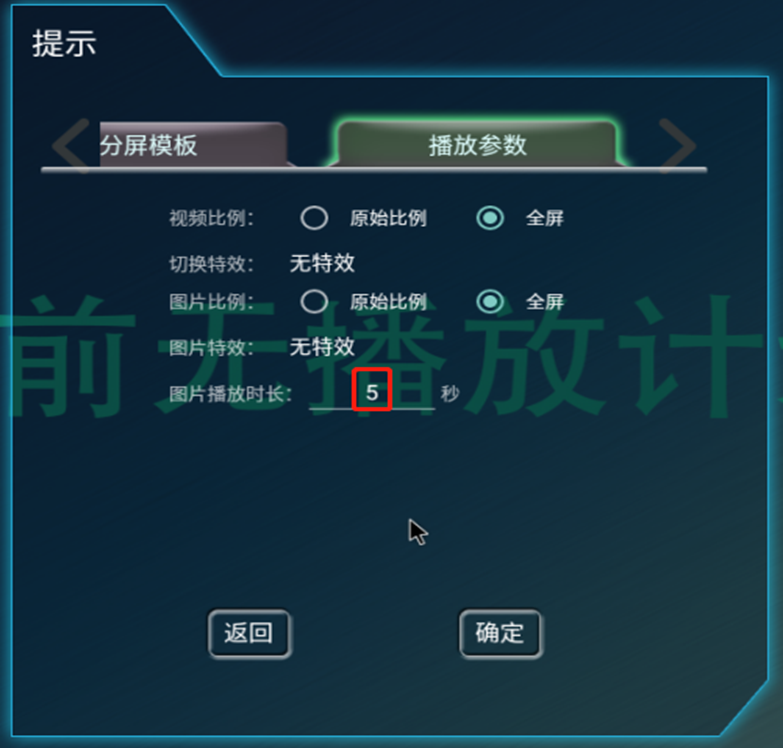 单机播放参数设置页面输入图片播放时间点击确认保存后生效