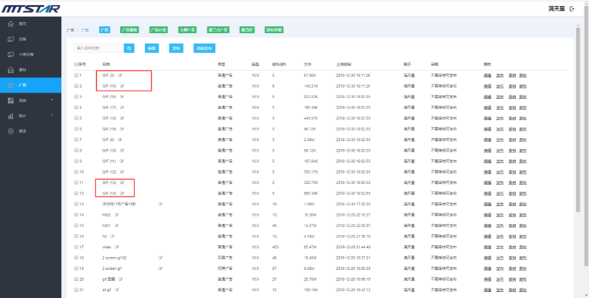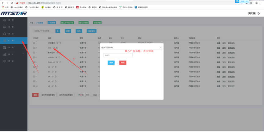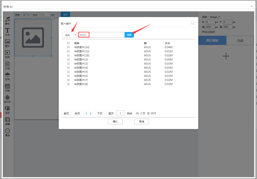 素材管理页面,选择一个您要修改名称的素材,点击名称前面的修改图标