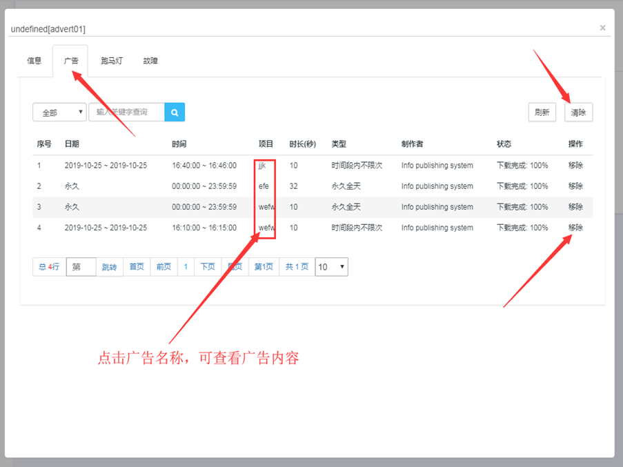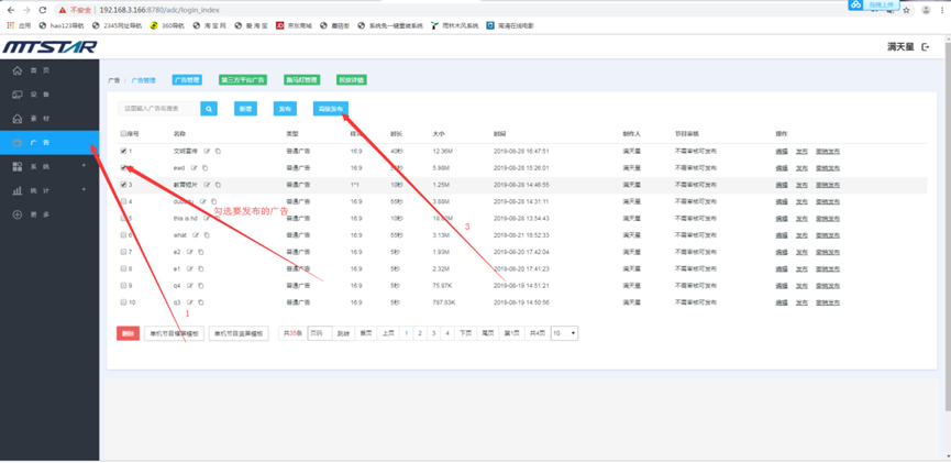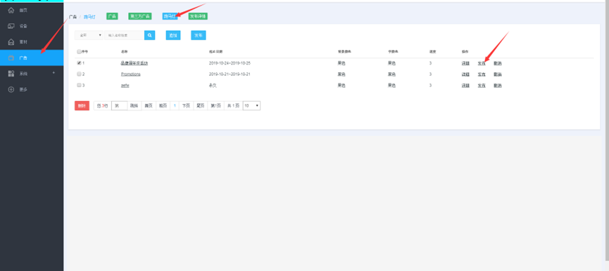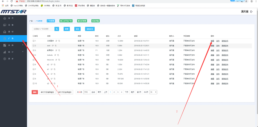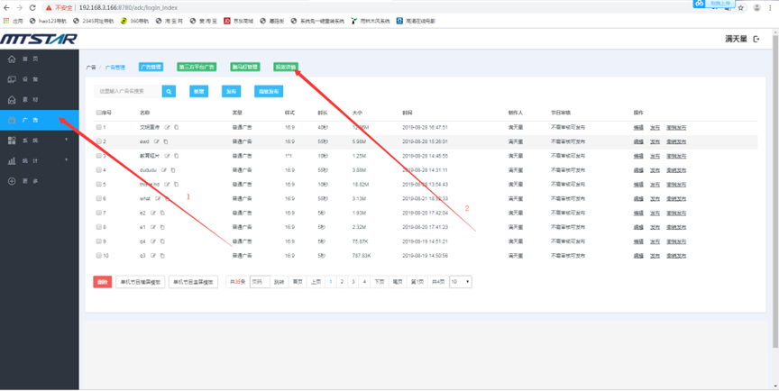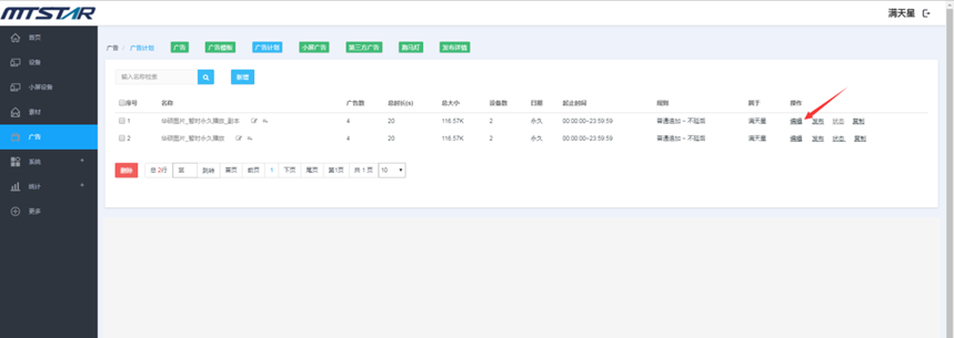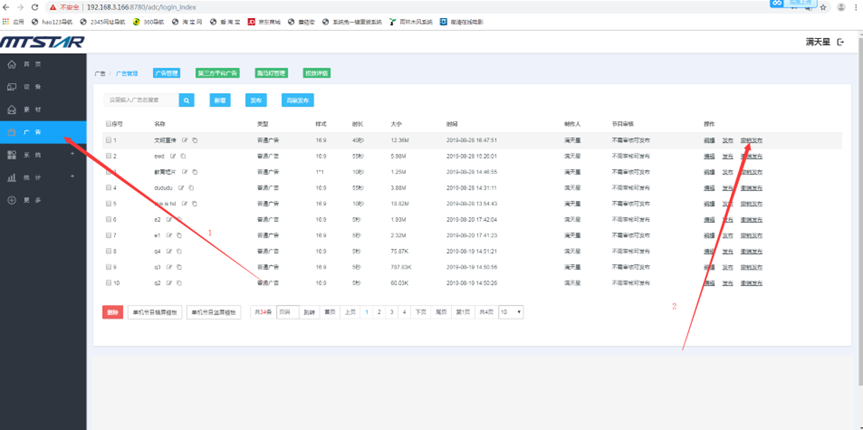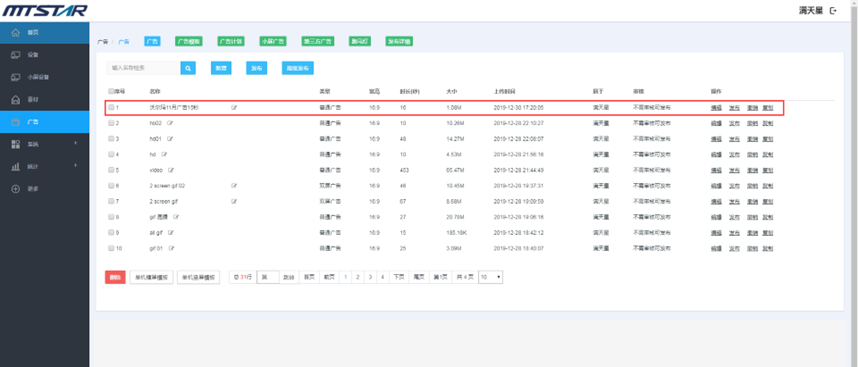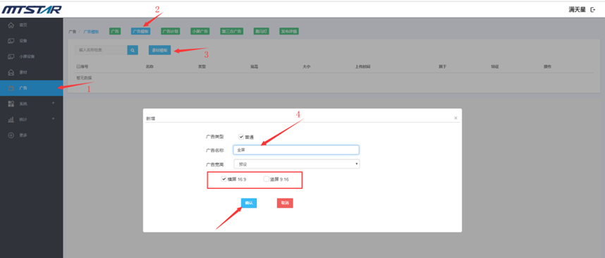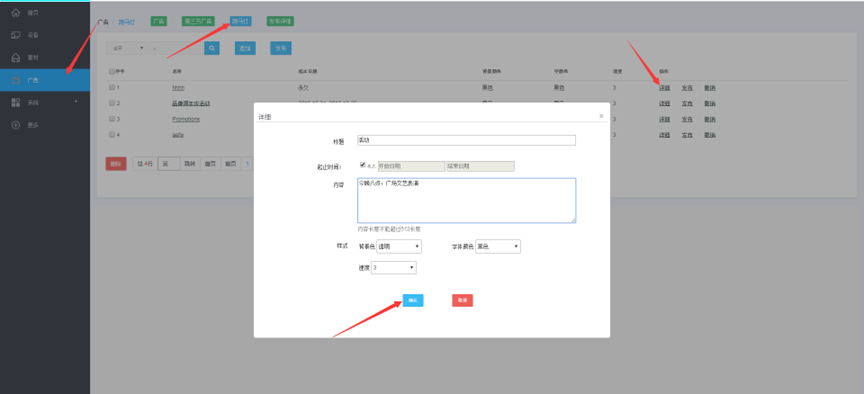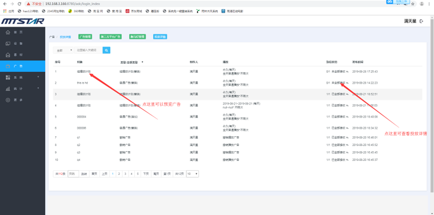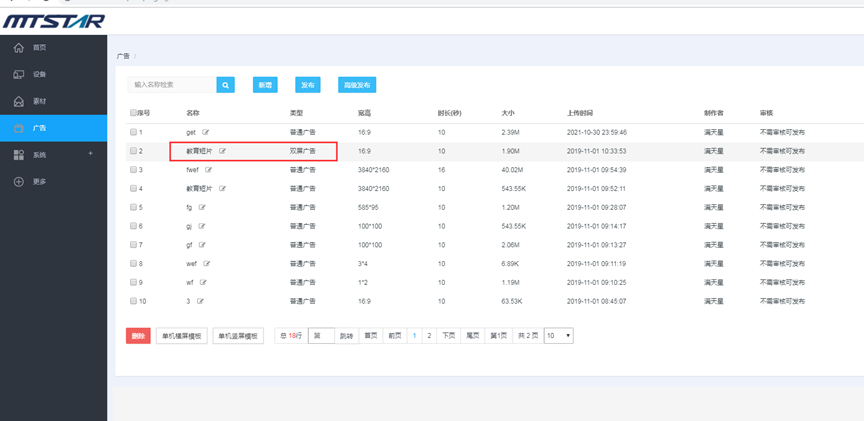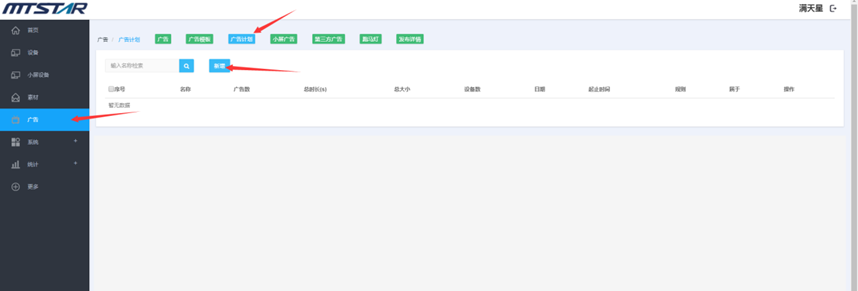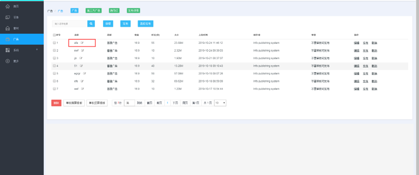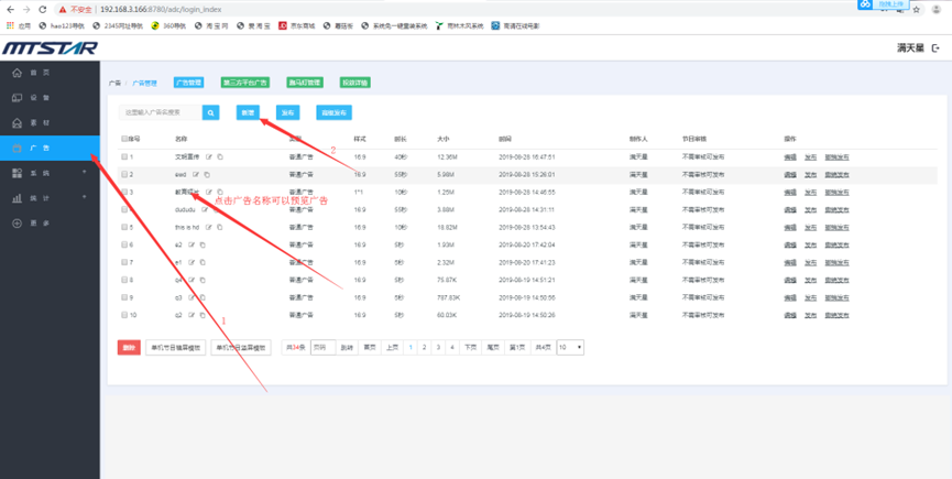 (1) 登录状态下,点击“广告”,点击“新增” --- 点击广告的名称可以预览广告