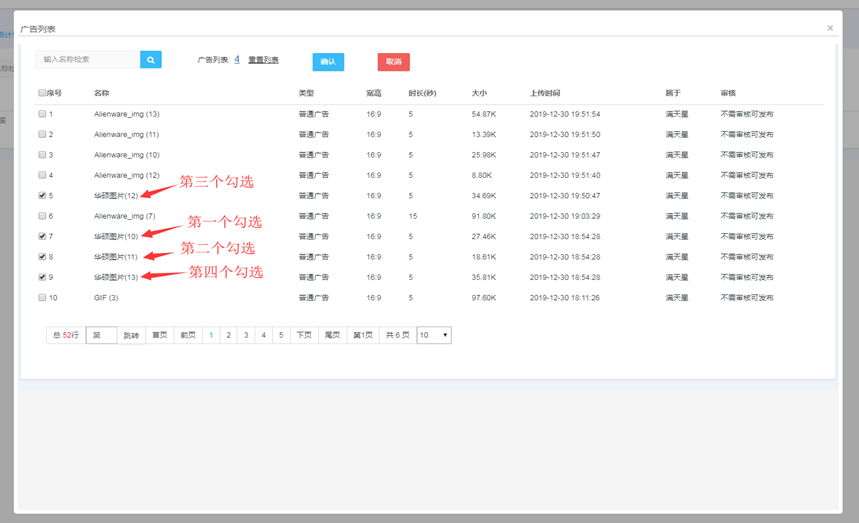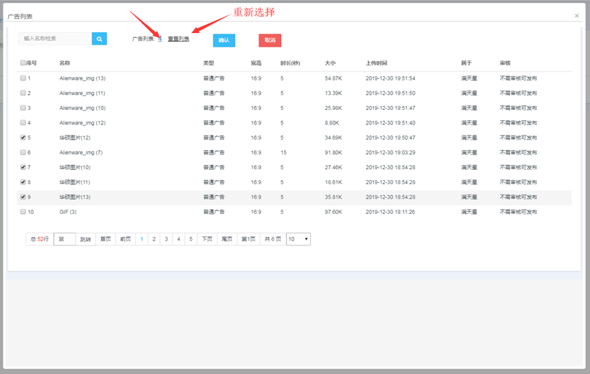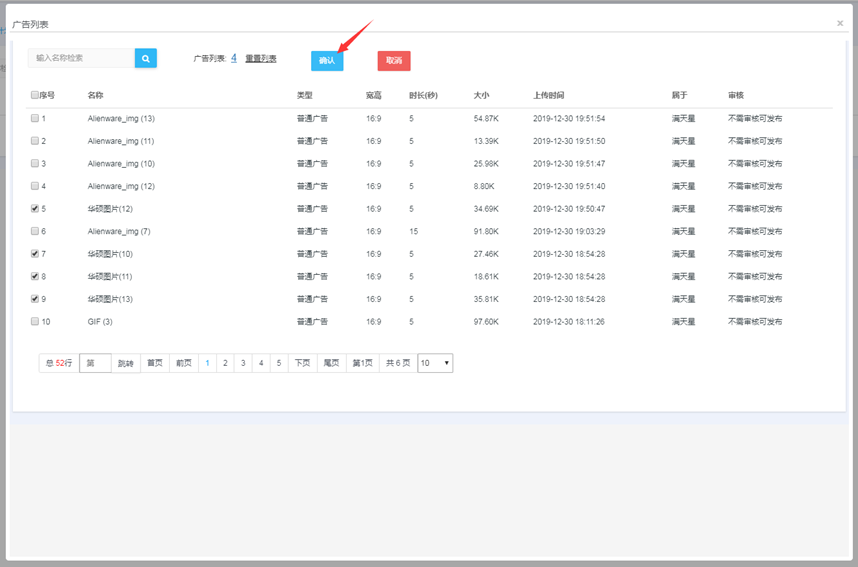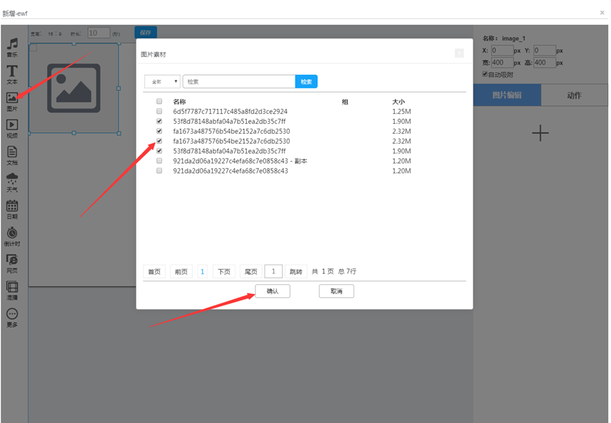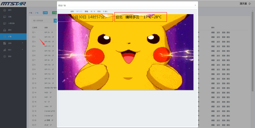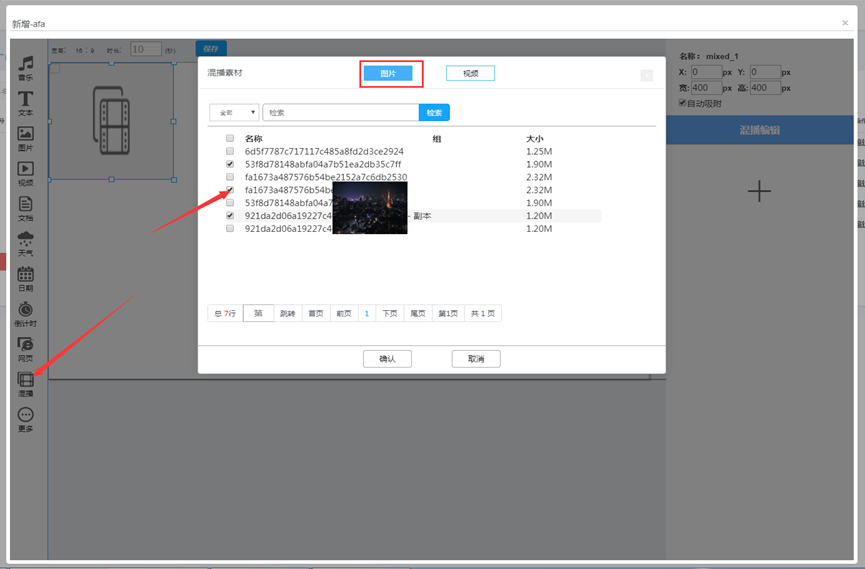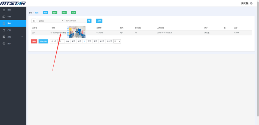 素材管理页面点击素材名称,预览素材