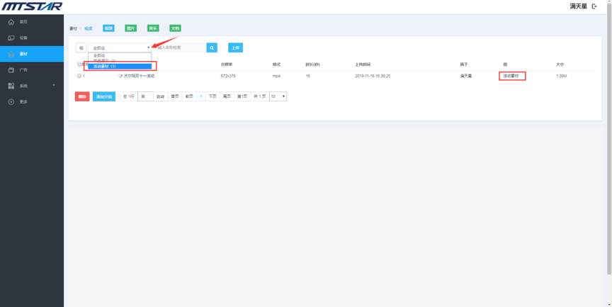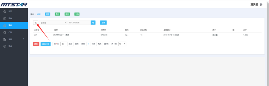 素材管理页面,点击分组