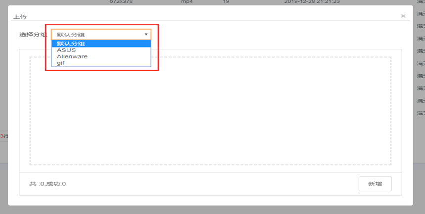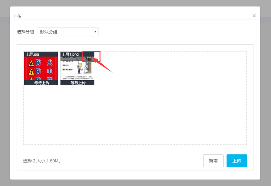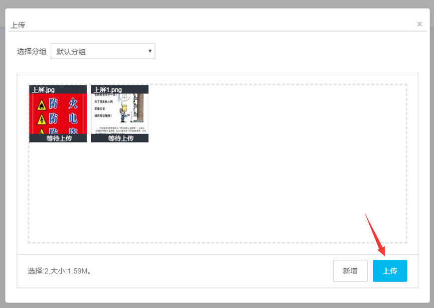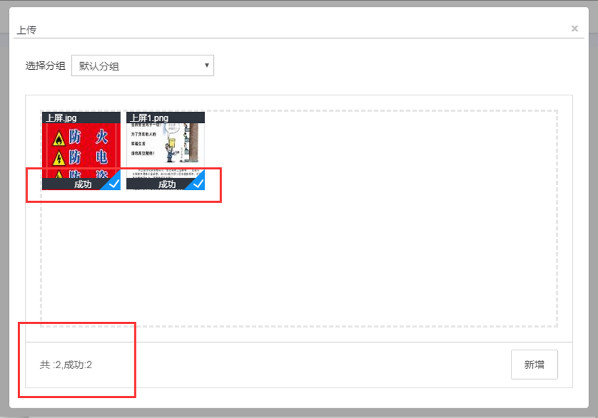 (2) 上传素材时也选择分组,直接将本次上传的素材加入分组中