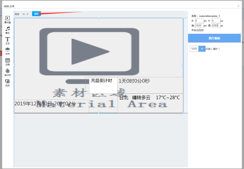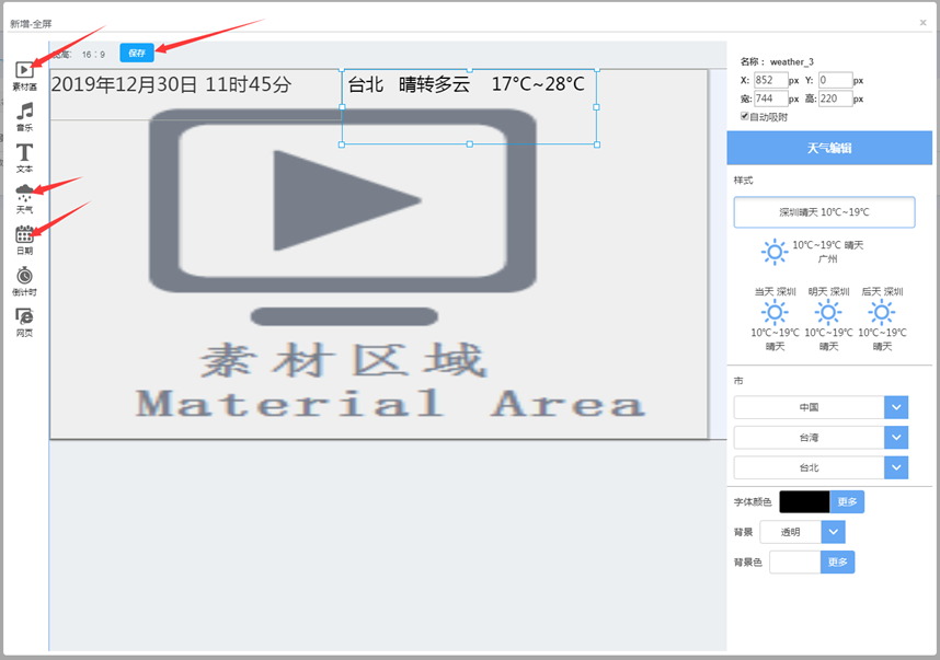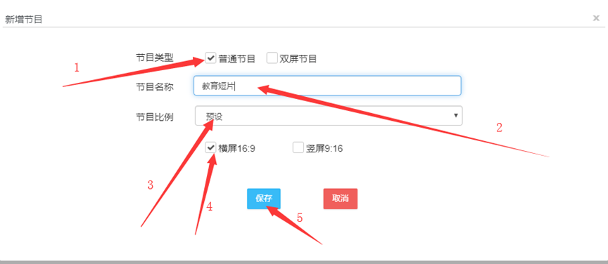 (2)选择节目类型,输入节目名称,设置节目比例,点击“保存”