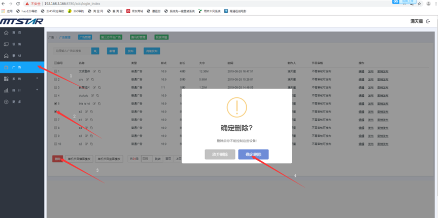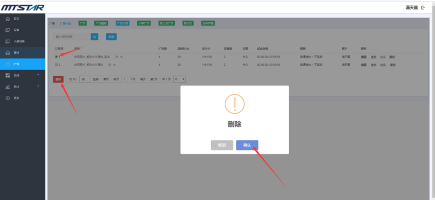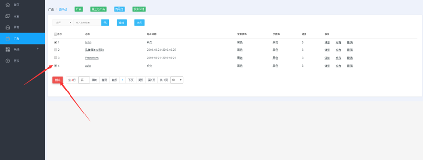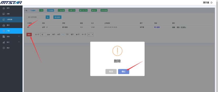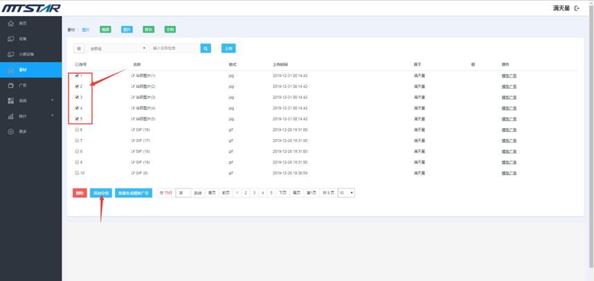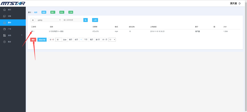素材管理页面,勾选您要删除的素材,然后点击删除(序号左边的勾选项是全选当页)