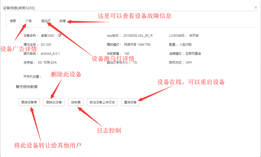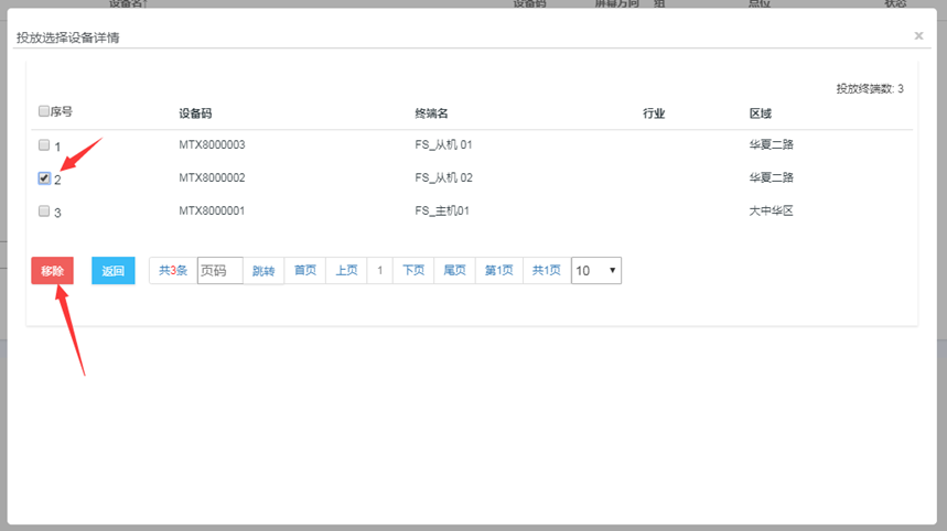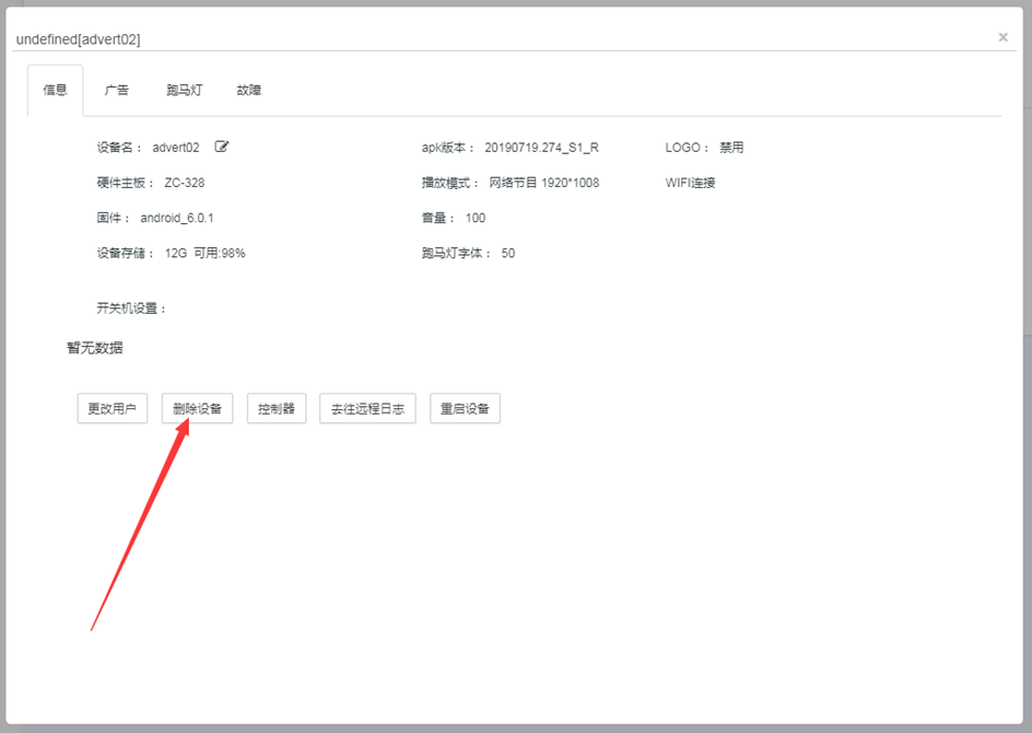 设备管理页面,选择一台要删除的设备,点击该设备的设备信息