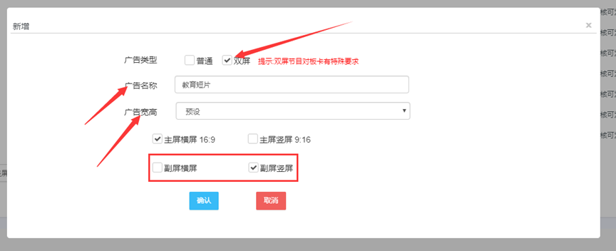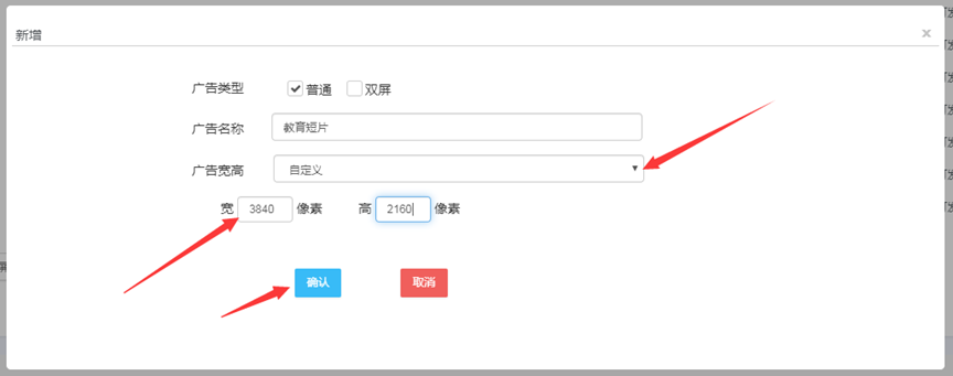 如果您需要自定义广告的宽高,请点击节目比例选择“自定义”,输入宽高