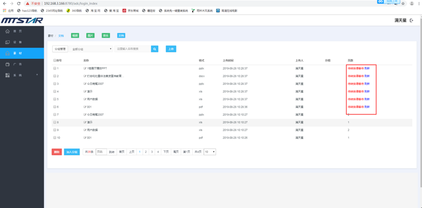 上传视频,音乐,文档,上传步骤跟以上操作一样,需要在对应的页面上传对应的文件