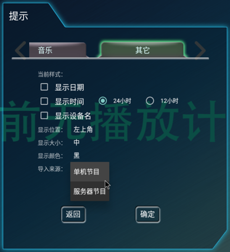 导入来源:导入时默认导入U盘节目还是服务器节目