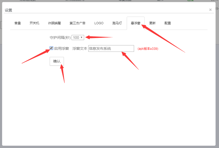 设置成功后,选中的设备将启用悬浮窗按钮,在播放程序退出后显示(离线设备上线后执行指令)