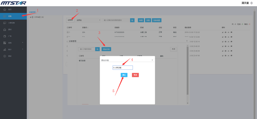 登录状态下,点击“设备”,点击“分组管理”,再点击“添加分组”,输入分组名,点击“保存”