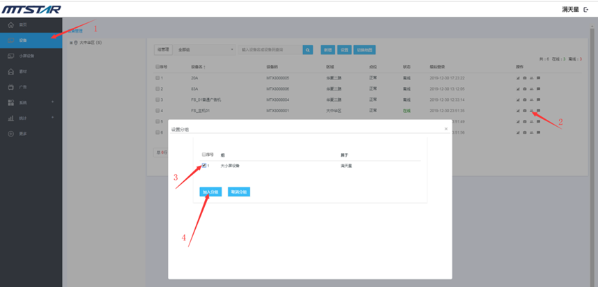 设备管理页面,点击要加入分组设备的 “修改分组”图标,勾选要加入或取消的分组