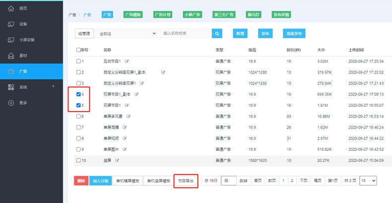选择要导出的节目,点击节目导出按钮