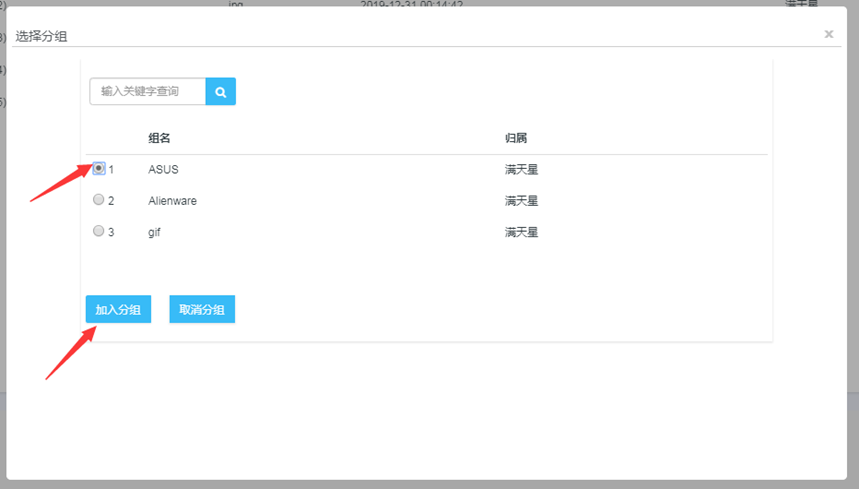 素材管理页面,点击“素材”,勾选要修改或要取消分组的素材,点击“加入分组”